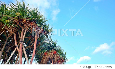 露兜樹和夏日的天空映襯著沖繩的藍天
