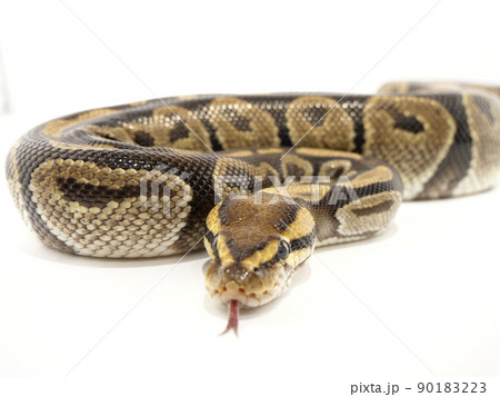 Ball python snake on white background