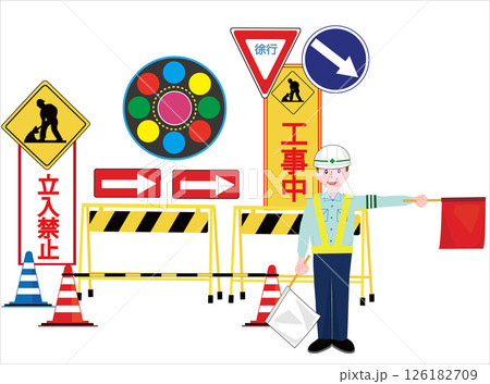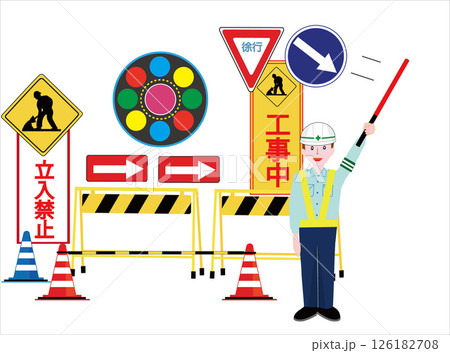 交通管制員在施工現場指揮交通。