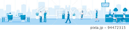 水平橫幅插圖/辦公室/公司景觀和工作人員(無文字)