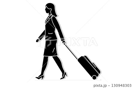 圖示插圖:一個女人拉著行李箱,讓人想起商務旅行或旅行