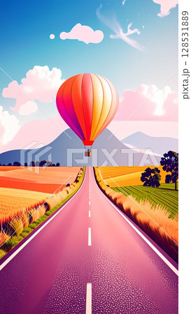熱氣球飄過馬路的垂直影像