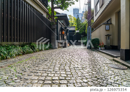 日本東京城市景觀:一座充滿氛圍的城市。清晨的神樂坂景色。