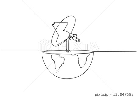 Single continuous line drawing half globe with satellite receiver on top. Receiving signals from outer space. World Telecommunication and Information Society Day. One line design vector illustration