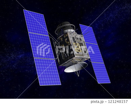 人造衛星、科學衛星、觀測衛星、通訊衛星等。單白背景(3DCG 影像)