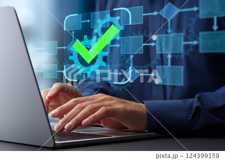 業務流程管理BPM和自動化技術。流程分析和優化。使用筆記型電腦