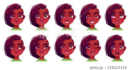 Black african girl face expression avatar set