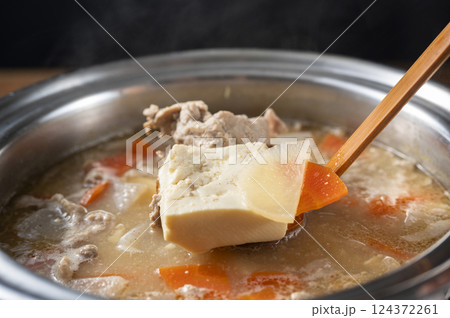 舀起豬肉湯