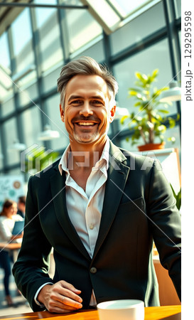 Portrait of middle aged businessman in suit. Handsome man smiling friendly