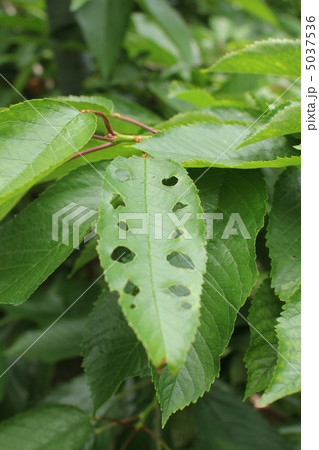 似乎被昆蟲吃掉並且有洞的繡球葉