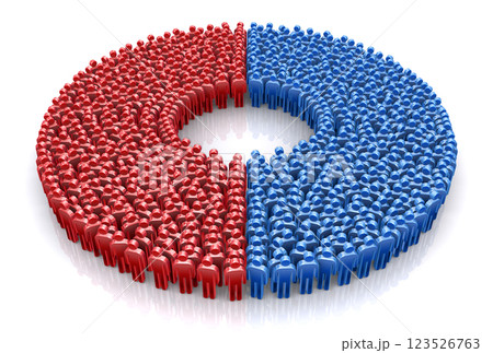 藍色和紅色方塊代表左右衝突。白色背景和複製空間。