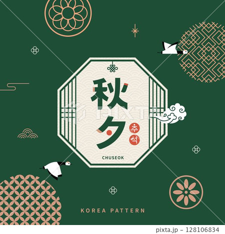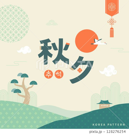 韓國中秋節插圖,有水果、花瓶和禮物盒