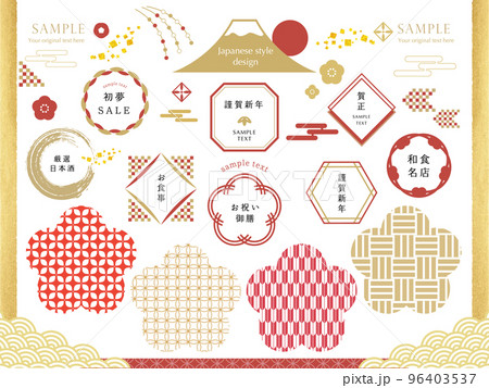 日本圖案符號和日式圖示集/新年插畫