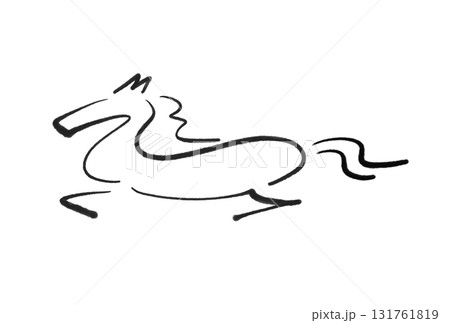 毛筆畫奔跑的馬剪影 2026 手繪插圖