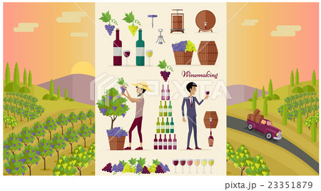 Winemaking Icon Set. Vintage Elite Strong Wine