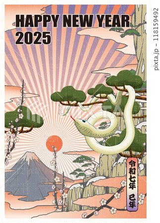 2025年新年賀卡模板「浮世繪風格設計」新年快樂帶註釋