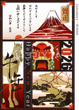 2026新年賀卡模板「5格設計」新年快樂附有便條圖案
