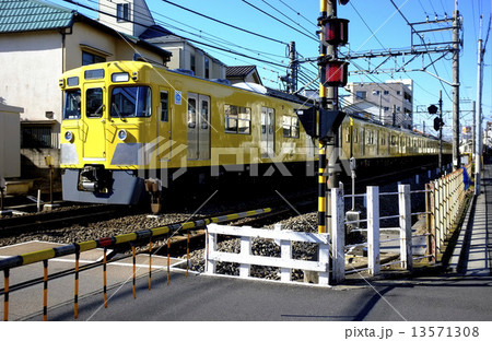 櫻花樹與西武新宿線2000系列列車(特快 - 10節車廂列車:開往西武新宿)