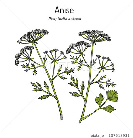 Anise or Pimpinella Anisum Flowering Plant Drawing