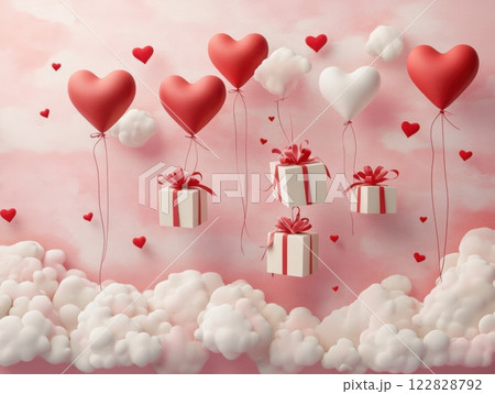 Valentines day podium display stage pink and gold podium heart shaped balloons and gift box gold ribbon, poster flyer