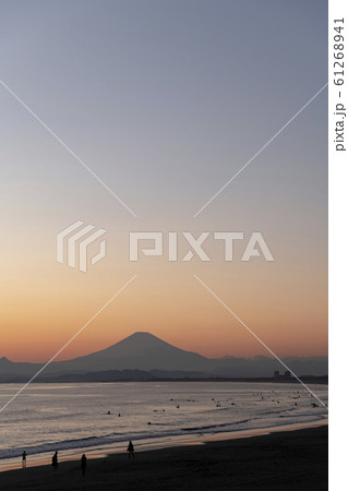 江之島片瀨西濱海灘和富士山的日落(神奈川縣藤澤市)