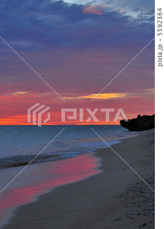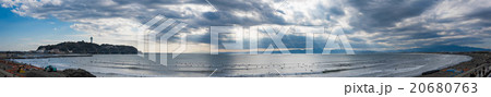 江之島片瀨西濱海灘和富士山的日落(神奈川縣藤澤市)