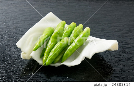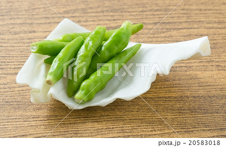 Fresh Green Chili Pepper on Cabbage Leaf