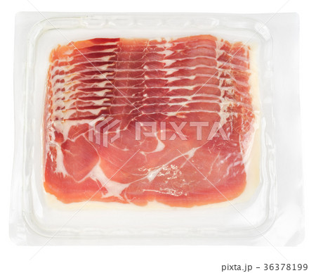 Prosciutto slices in vacuum plastic packaging