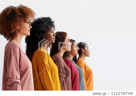 Happy beautiful asian, south american and afro women meeting outdoors and having fun, multiethnical adult females friends spending time together sitting in a bar street cafe summer time. Generative AI