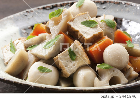 新年賀卡材料與 Osechi 美食和日本圖案框架