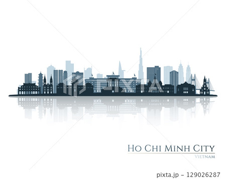 Ho Chi Minh City skyline silhouette with reflection.