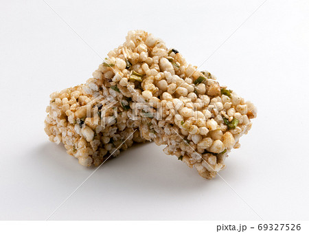 白色背景呈現美味悠閒的五穀米餅零食特寫