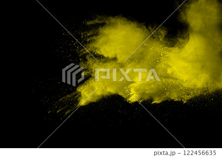 Yellow cloud of powdery dust is blowing in the air
