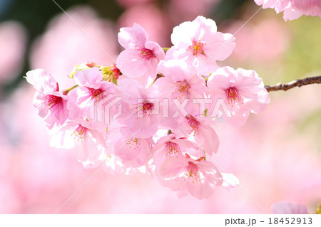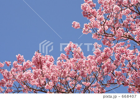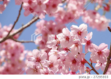 粉紅色橫紅櫻花的特寫 [藍天背景] [盛開]