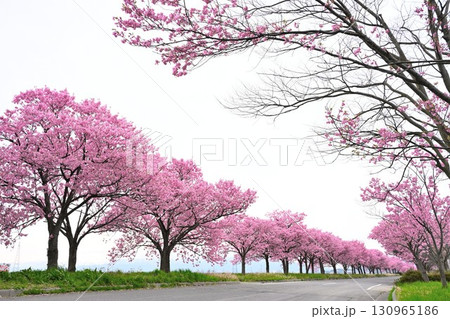 香川縣萬能町夢櫻路,道路兩旁盛開著橫尾櫻。
