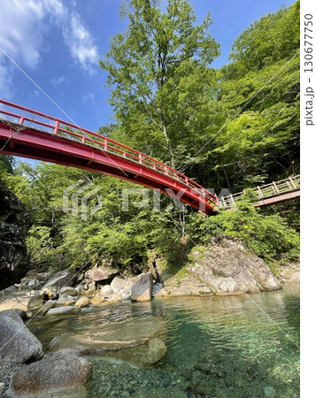 日本岐阜縣中津川市湯森公園通往龍神瀑布的吊橋