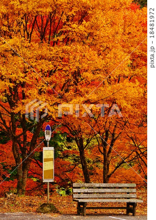 被秋葉包圍的休息區