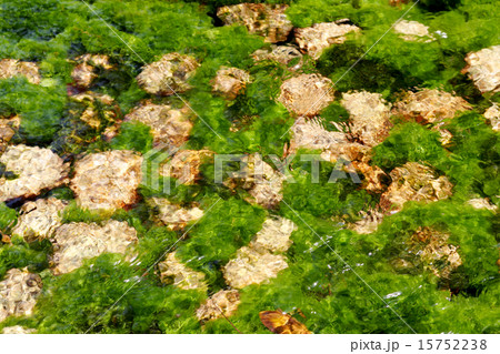 【背景素材】覆蓋海岸岩石區域的藻類特寫
