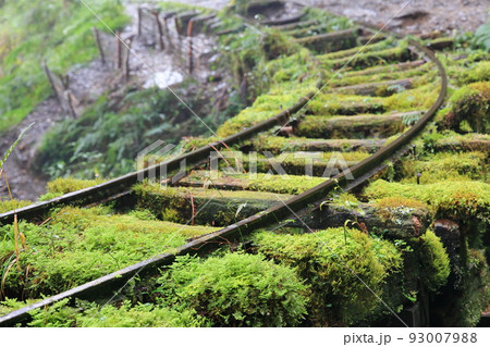 宜蘭見晴古道中被苔蘚覆蓋的荒廢運材鐵道
