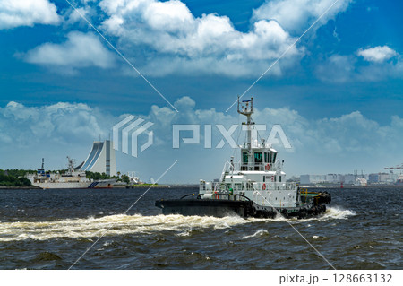(東京)從台場海濱公園看到的水上巴士總站和彩虹橋