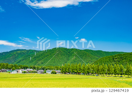 滋賀縣高島市牧野町的水杉樹和稻田