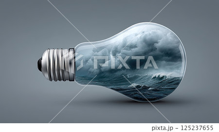 lightbulb containing stormy ocean symbolizes chaotic ideas