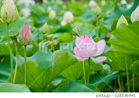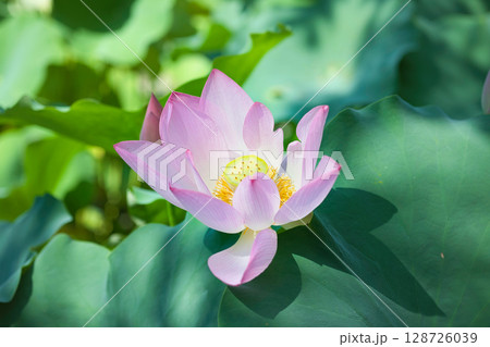 蓮花葉很大,顏色是美麗的淡粉紅色