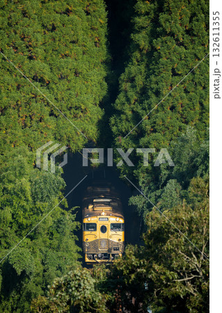 JR 九州觀光列車 “或る列車” 從森林隧道中駛出 日本铁道火车 KIHA47