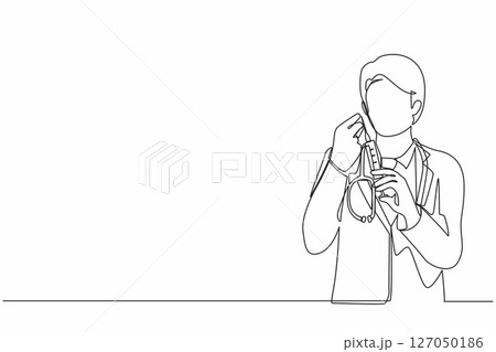 Single continuous line drawing doctor or scientist in laboratory holding syringe with liquid vaccines for children or older adults, fight against virus covid-19. One line draw graphic design vector