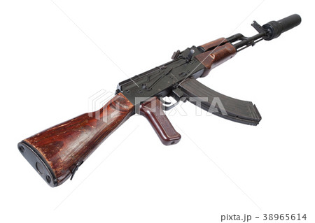 Kalashnikov with silencer isolated on white