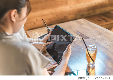 在便利店/超市使用終端管理庫存的店員/兼職女性