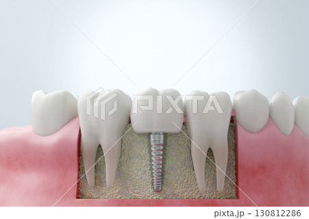植體植入橫斷面圖 鈦人工牙根與齒槽骨黏合