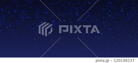Dark background with blue pixel pattern.