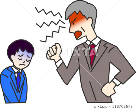 身穿工作服的老闆對有權勢的人進行騷擾、訓斥,導致下屬叛逆、放棄工作場所的形象插畫